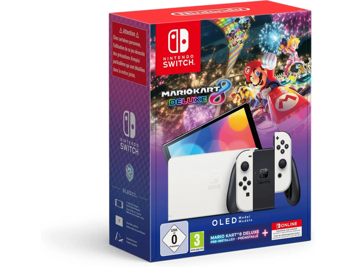 Pack Consola NINTENDO Switch OLED Branco + Mario Kart 8 Deluxe